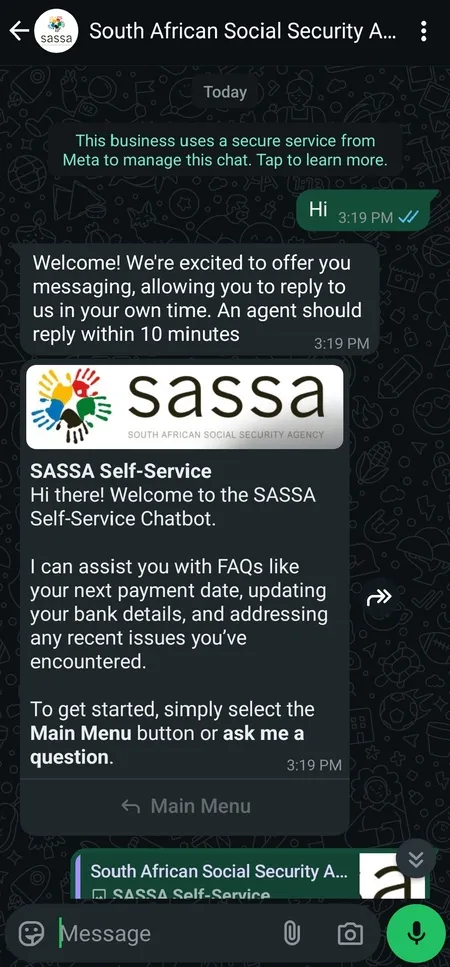 - You can type “SASSA” to get back to the main menu where you can apply for SRD Grant as well.